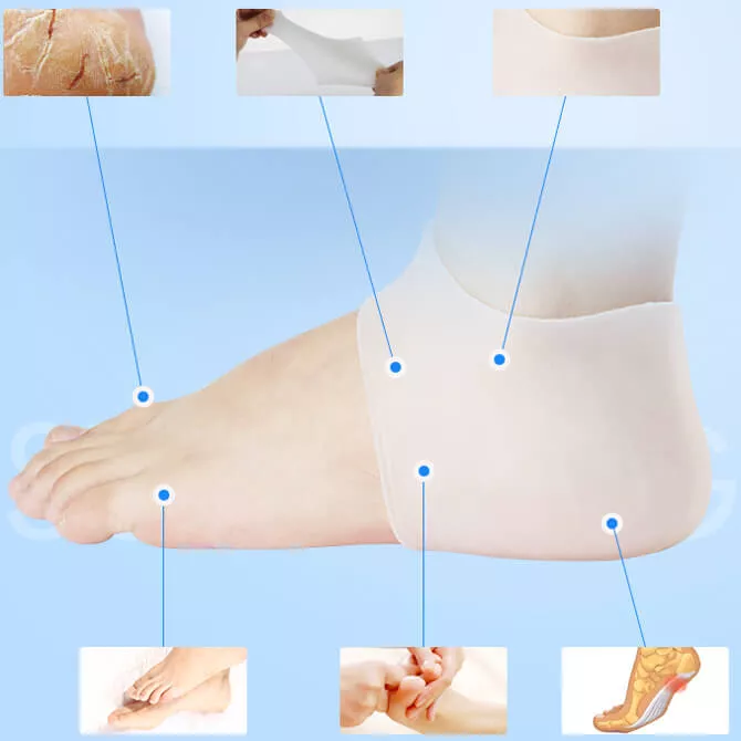 Soft and comfortable Heel Case Toes Care Insoles Protective Sleeve Set for Men and Women. Type: Heel Case Size: All code Color: White Material: PU gel To protect your heel, suitable for high heel shoes, sports shoes, casual shoes, etc.